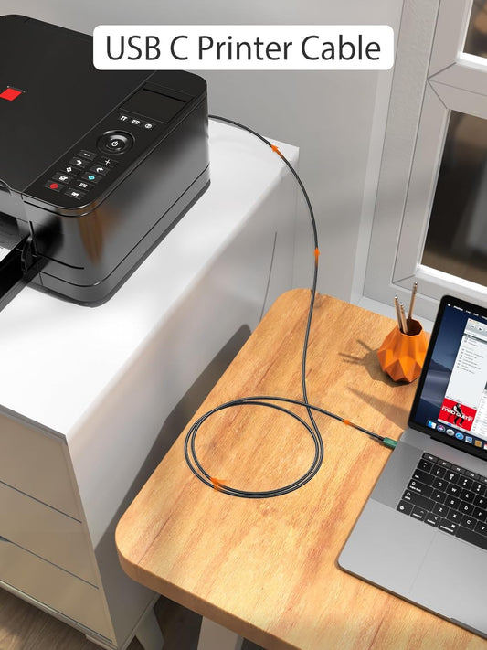 USB-C Printer Cable 2 M, Type B 2.0 Cable Compatible with Macbook Pro, HP, Canon, Brother, Samsung Printers, PVC with Aluminium Housing, 6.6 Ft/Black